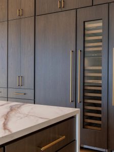 Paneled Subzero 30” fridge and 30” freezer columns and 18” wine cooler